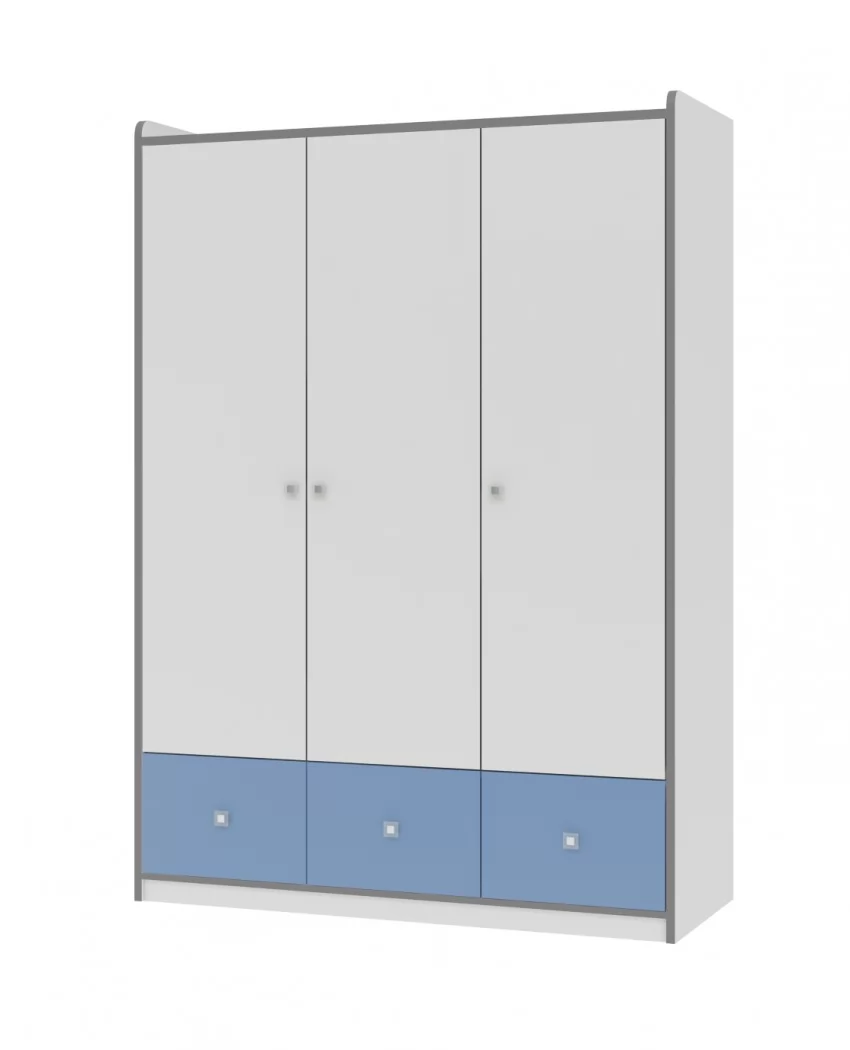 Трехстворчатый шкаф "Дельта-9.1 Сильвер" предназначен для одежды и других вещей ребенка. Верхняя часть шкафа разделена на 2 отделения. Большее отделение комплектуется штангой и антресольной полкой, меньшее - полками. Снизу шкаф оборудован тремя выдвижными ящиками.