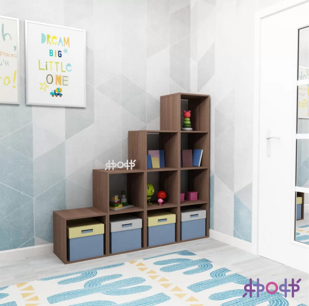 Стеллаж «Ярофф» является модульным. Модули разные по размеру и количеству ячеек от 1й до 4х., из них Вы сможете собрать свой уникальный стеллаж.