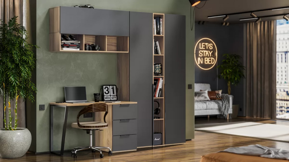 Набор детской мебели «Порто» №9 Яблоня Беллуно, Графит софт в Мегионе