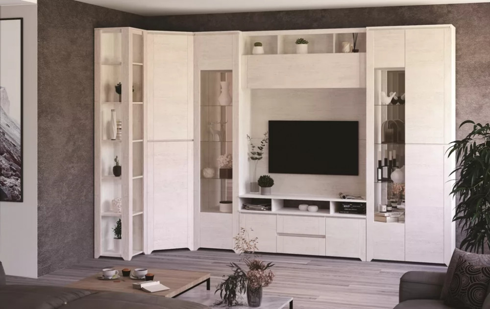 Новая коллекция мебели "Твист" создана с учетом всех потребностей и включает только самое необходимое: вместительную систему хранения, навесные полки. Минимальный состав модулей достаточен для обстановки гостиной. Доступность гарниртура и его функциональность дополняет современный дизайн. Каркас и фасад из ЛДСП 16м в цвете "Молокай". Ящики полного выдвижения, петли с доводчиками.