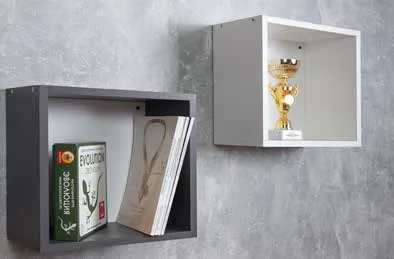 Декоративный куб в декорах Белый, Дуб Золотистый и Графит с белой задней стенкой можно использовать как навесную полку для книг и для декорирования интерьера. ЛОЙС 98 Куб 1 - оригинальное решение для декора комнаты подростка.