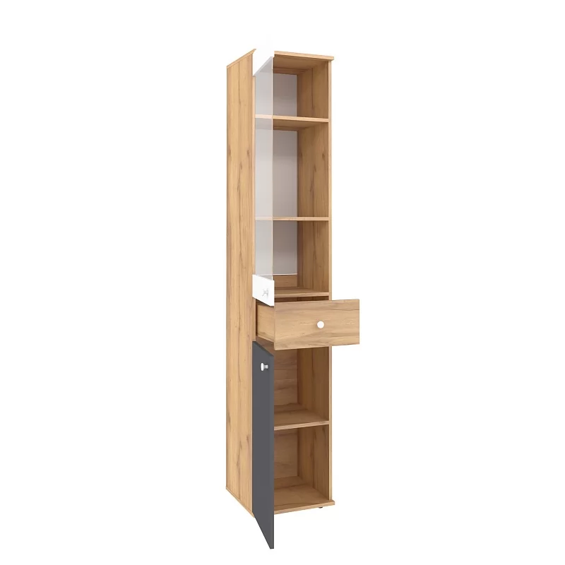 Функциональный и удобный Шкаф МЦН для книг поможет систематизировать хранение учебников и другой литературы. Чтобы было проще найти нужную книгу, верхний фасад шкафа выполнен из прозрачного стекла. В выдвижном ящике на шариковых направляющих удобно хранить разные мелочи и аксессуары. За нижним глухим фасадом - ниша с полочкой, которая устанавливается на скрытые полкодержатели. Верхний и нижний фасады можно перенавесить на левую и на правую стороны.