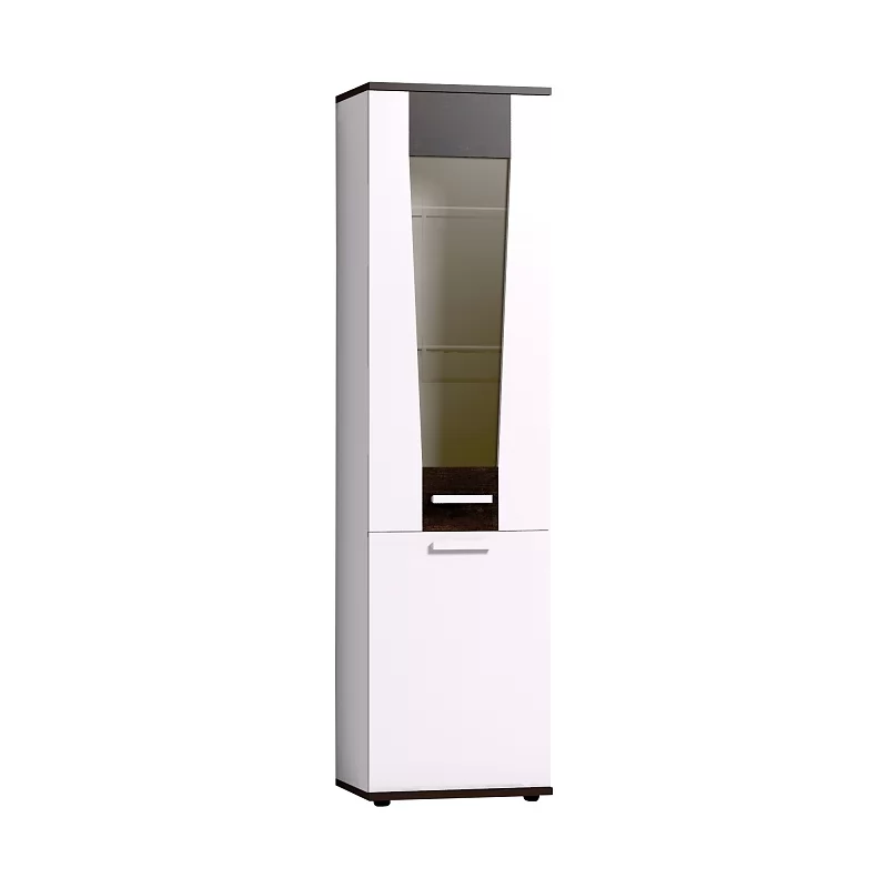 Ширина (мм): 560 Высота (мм): 2125 Глубина (мм): 400 Материал: ЛДСП/Стекло Цвет: Белый/Орех шоколадный Коллекция: Норвуд