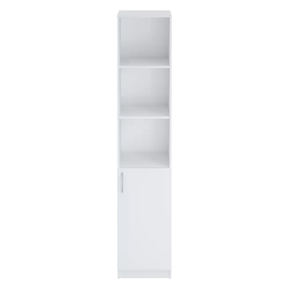 Стеллаж, совмещающий в себе 2 функции - открытые полки для декора или часто необходимых вещей и практичные закрытые полки - для того, что Вы не хотите показывать в интерьере.