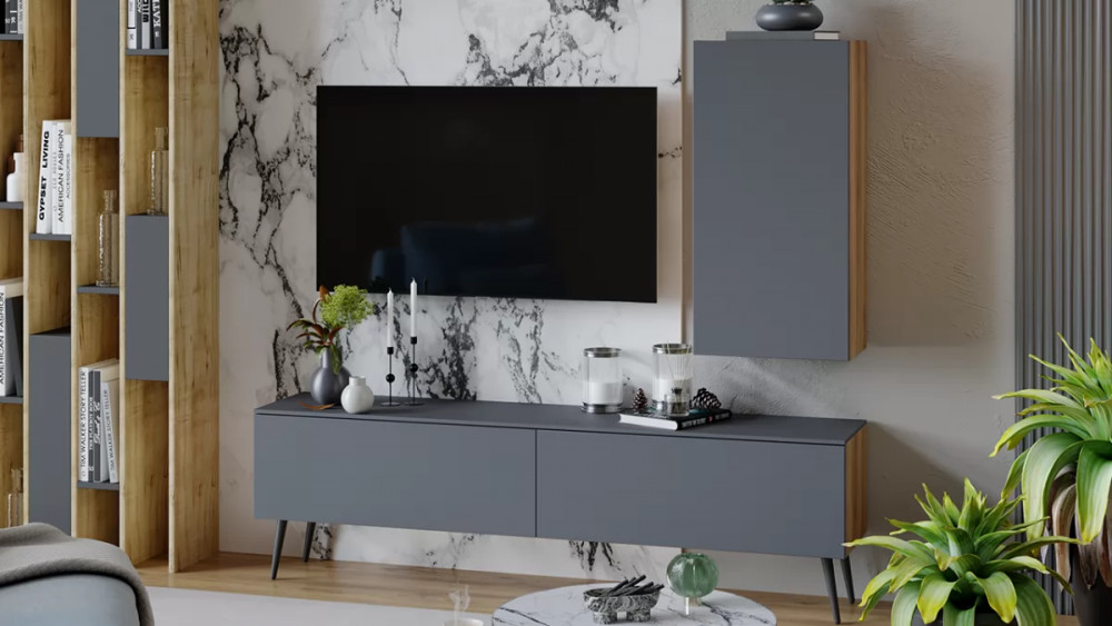 Гостиная «Порто» №3 Яблоня Беллуно, Графит софт в Мегионе
