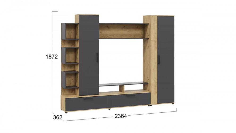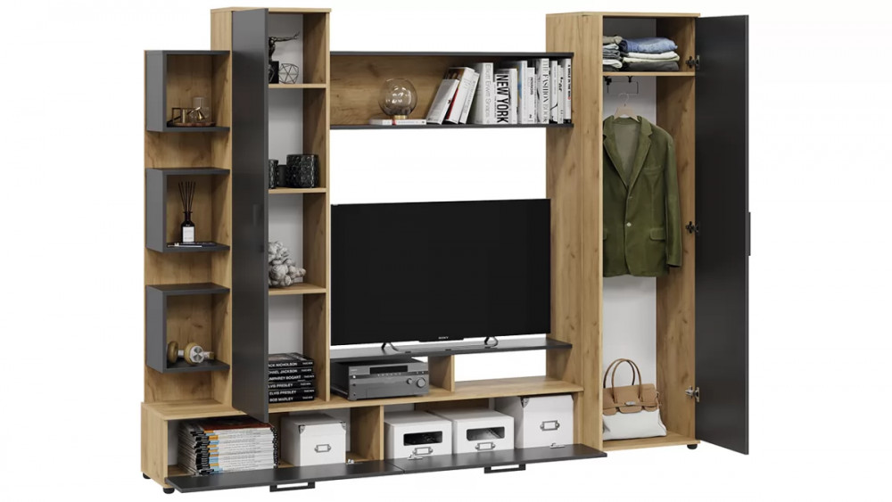 Стенка «Дакота» Дуб Крафт золотой, Антрацит в Мегионе