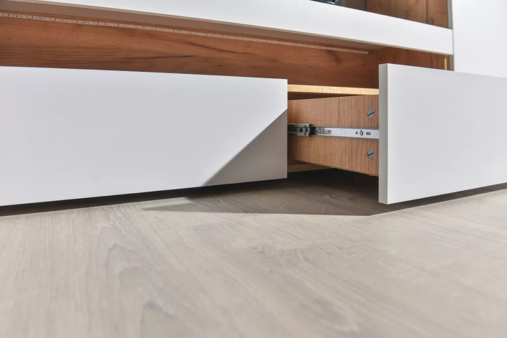 Фурнитура: выкатные ящики на шариковых направляющих полного выдвижения.