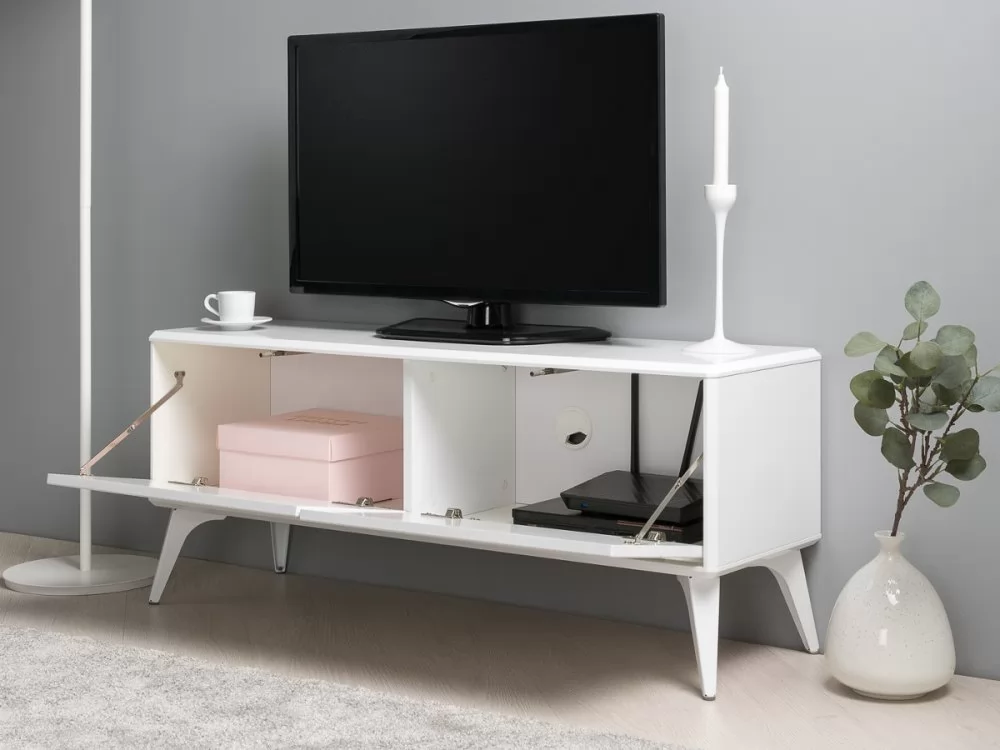 В тумбе предусмотрена система вырезов под провода, что делает установку и подключение техники быстрой, простой и приятной. При этом все лишние провода окажутся скрытыми.