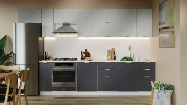 Габаритный размер готового набора модулей с учетом газовой плиты на 60 см: 3 400