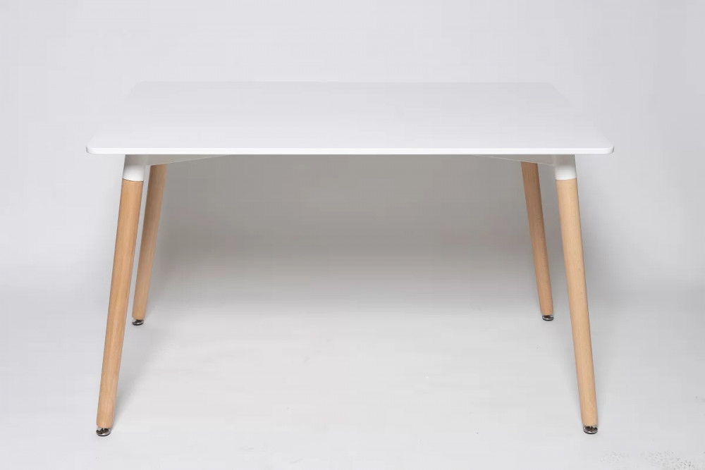 Стол в стилей Eames — настоящий хит скандинавского дизайна, уже несколько лет не теряющий своей популярности. Столешница выполнена из экологичного матового МДФ, по износостойкости и долговечности превосходящего натуральную древесину. Белый цвет столешницы привносит в пространство ощущение чистоты и свежести. Ножки из цельного массива светлого бука и геометрические металлические подпорки делают стол невероятно устойчивым и прочным. Благодаря натурального расцветке и округлой форме стол в стиле Eames DSW идеально впишется как в жилое помещение, так и в общественную зону кафе или ресторана, особенно хорошо подчеркнув интерьер в стиле минимализм или хай-тек.