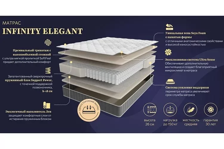 Матрас INFINITY ELEGANT 1800*2000мм (Пена/лен, ср.жесткий, h 26см) в Мегионе