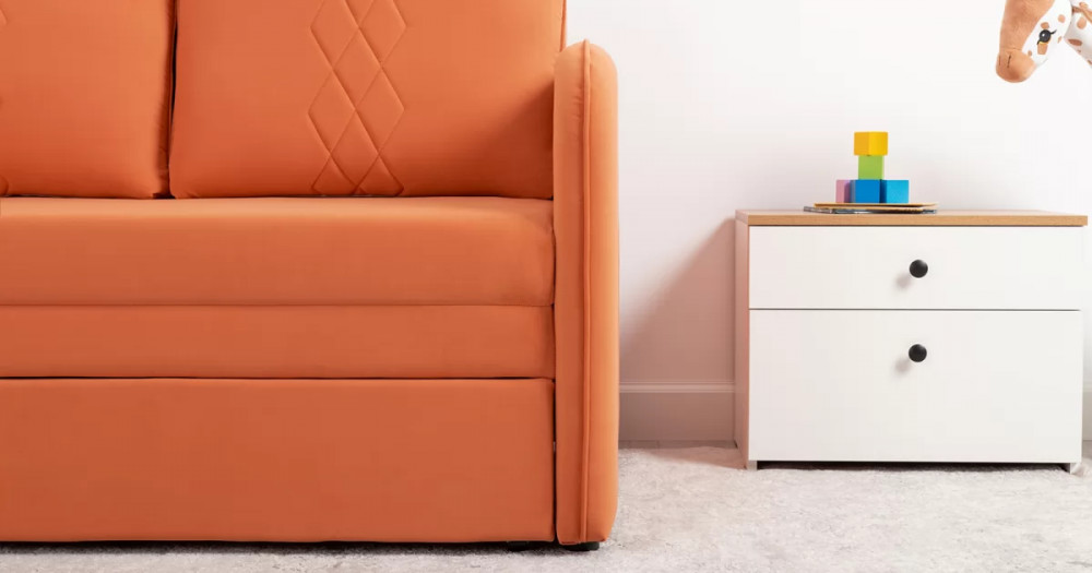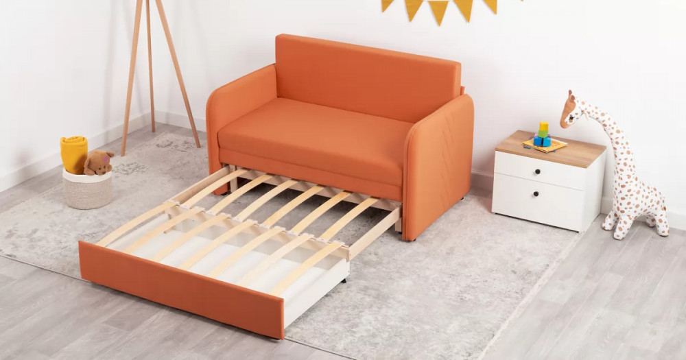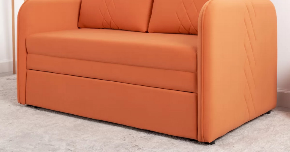 Стильный компактный диван для детской и гостиной. При своих скромных размерах он трансформируется в полноценное спальное место для детей и подростков. Лаконичный дизайн в виде декоративной отстрочки подчеркивает фактуру велюра, а небольшие размеры позволят разместить его в любом пространстве.
