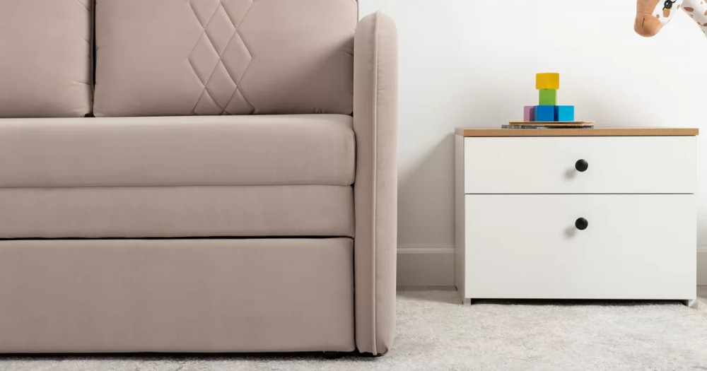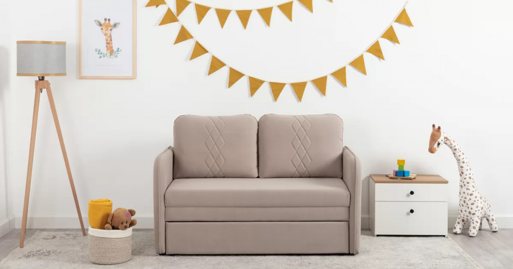 Стильный компактный диван для детской и гостиной. При своих скромных размерах он трансформируется в полноценное спальное место для детей и подростков. Лаконичный дизайн в виде декоративной отстрочки подчеркивает фактуру велюра, а небольшие размеры позволят разместить его в любом пространстве.
