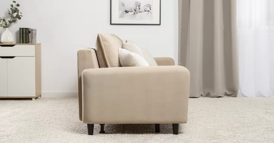 Объемные подушки обеспечивают комфортный отдых. В комплекте 5 двусторонних приспинных подушек и 2 декоративные подушки-думки в ткани букле. Надежный механизм трансформации и ровное спальное место обеспечивают полноценный сон.