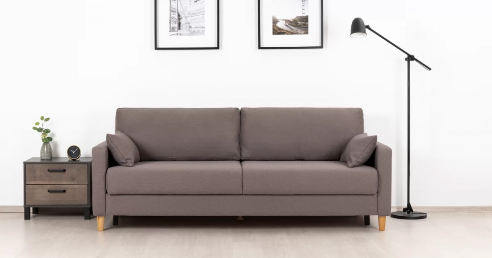 Дилан Диван-кровать арт. ТД 421Габаритысложенный (Д x Г х В, мм): 2170 x 960 x 880разложенный (Д x Г х В, мм): 2170 x 1370 x 620спальное место (Д x Ш, мм): 1910 x 1370высота посадки (мм): 460глубина сиденья (мм): 570высота спинки (мм): 420высота подлкотника от сиденья (мм): 160максимально допустимая нагрузка: 80 кг на одно посадочное место, 100 кг на одно спальное местоМеханизм трансформацииЕврокнижка с механизмом раскладки «тик-так»Бельевой ящикестьс перегородкой по центру (2 отделения)размер отделения (Д x Ш, мм):  786 x 688 x 120Материалыосновная ткань: Лаунж (шенилл) / Сага (рогожка)выполняется в тканях: Сага браун (бронзовый)каркас: фанера