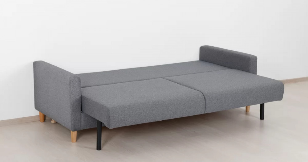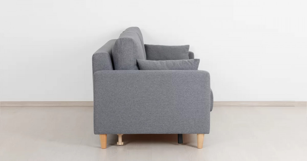 Дилан Диван-кровать арт. ТД 423Габаритысложенный (Д x Г х В, мм): 2170 x 960 x 880разложенный (Д x Г х В, мм): 2170 x 1370 x 620спальное место (Д x Ш, мм): 1910 x 1370высота посадки (мм): 460глубина сиденья (мм): 570высота спинки (мм): 420высота подлкотника от сиденья (мм): 160максимально допустимая нагрузка: 80 кг на одно посадочное место, 100 кг на одно спальное местоМеханизм трансформацииЕврокнижка с механизмом раскладки «тик-так»Бельевой ящикестьс перегородкой по центру (2 отделения)размер отделения (Д x Ш, мм):  786 x 688 x 120Материалыосновная ткань: Лаунж (шенилл) / Сага (рогожка)выполняется в тканях: Сага дарк грей (темно-серый)каркас: фанера