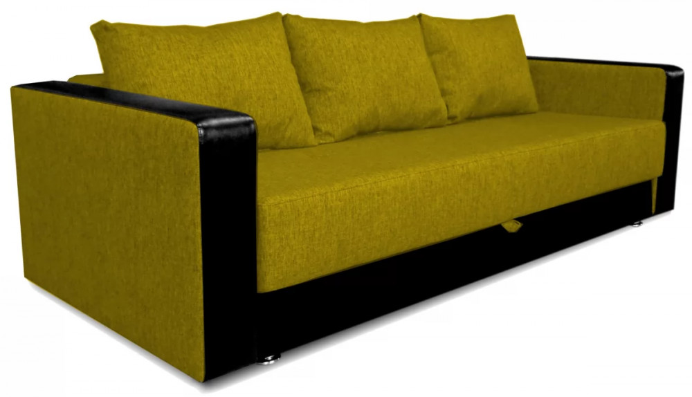 Трансформация дивана в спальное место происходит по принципу «еврокнижка»: сиденье выдвигается вперед, а подушка спинки опускается в образовавшееся пространство.