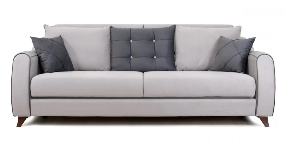 Френсис Диван-кровать арт. ТД 264Габаритысложенный (Д x Г х В, мм): 2280 x 1030 x 900спальное место (Д x Ш, мм): 1950 x 1310высота посадки (мм): 480глубина сиденья (мм): 570максимально допустимая нагрузка: 80 кг на одно посадочное место, 100 кг на одно спальное местоМеханизм трансформацииКнижка с 0 стенойБельевой ящикестьс перегородкой по центру (2 отделения)размер отделения (Д x Ш, мм): 890 x 840 x 200Варианты исполнения5 артикуловсочетание тканей только как на фотоМатериалыосновная ткань: Амиго (велюр)выполняется в тканях: Амиго эш (светло-серый), Амиго графит (темно-серый)каркас: фанера деревянный брус ДСП ДВП ЛДСП ДВПооснование матраса: ППУ на блоке плоских пружин «змейка», периотекприспинные подушки, шт: 3декоративные подушки, шт: 2наполнитель подушек: полиэфирное волокно «шарики»материал опор: пластикцвет опор: коричневыйДекордекоративный кант, пуговицы, отстрочка, утяжки на подушках и подлокотникахНазначениев гостиную в гостевую комнатуТребуется ли сборкадаУпаковкаколичество коробок, шт: 2общий вес с упаковкой, кг: 88Гарантия: 18 месяцев