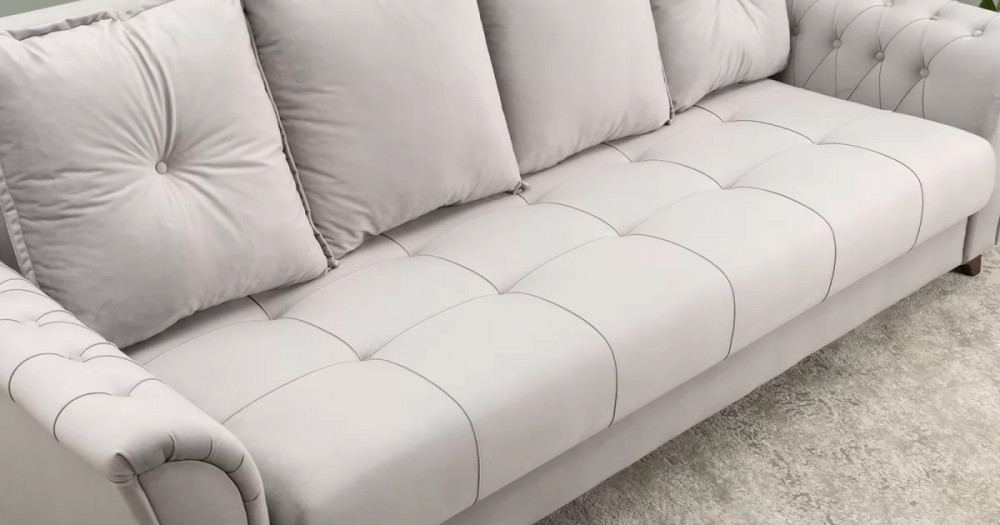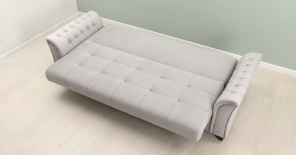 Габаритысложенный (Д x Г х В, мм): 2450 x 1060 x 890спальное место (Д x Ш, мм): 1950 x 1310высота посадки (мм): 460глубина сиденья (мм): 540максимально допустимая нагрузка: 80 кг на одно посадочное место, 100 кг на одно спальное местоМеханизм трансформации-Книжка с 0 стенойБельевой ящик-есть  перегородкой по центру (2 отделения)размер отделения (Д x Ш, мм): 890 x 840 x 200каркас: фанерадеревянный брус
