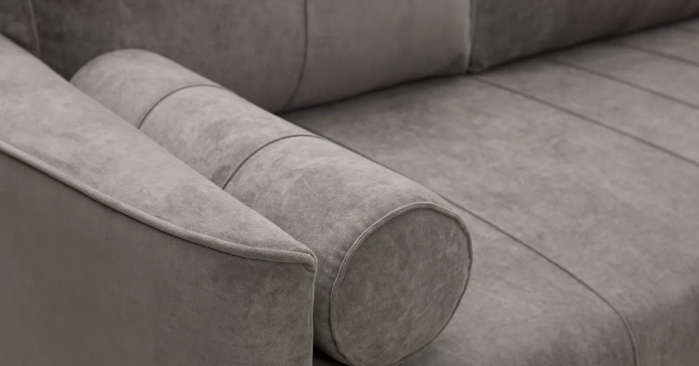 Комплект состоит из прямого и углового диванов, кресла для отдыха и пуфа.