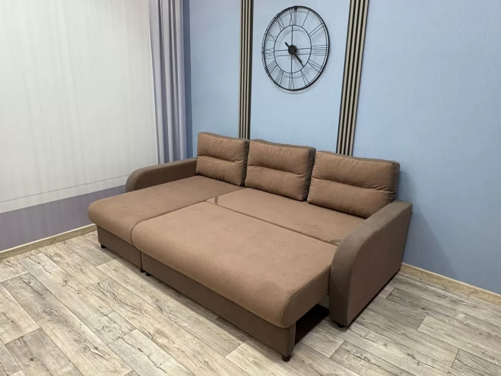 Угловой диван «Дебют Евро» украсит любой интерьер и будет радовать обладателей своей функциональностью. В этом диване имеется два вместительных короба для хранения постельных принадлежностей, а удобный в эксплуатации механизм трансформации «Пантограф» превратит этот диван в кровать с ровным спальным местом. Съемные подлокотники упрощают процесс транспортировки.