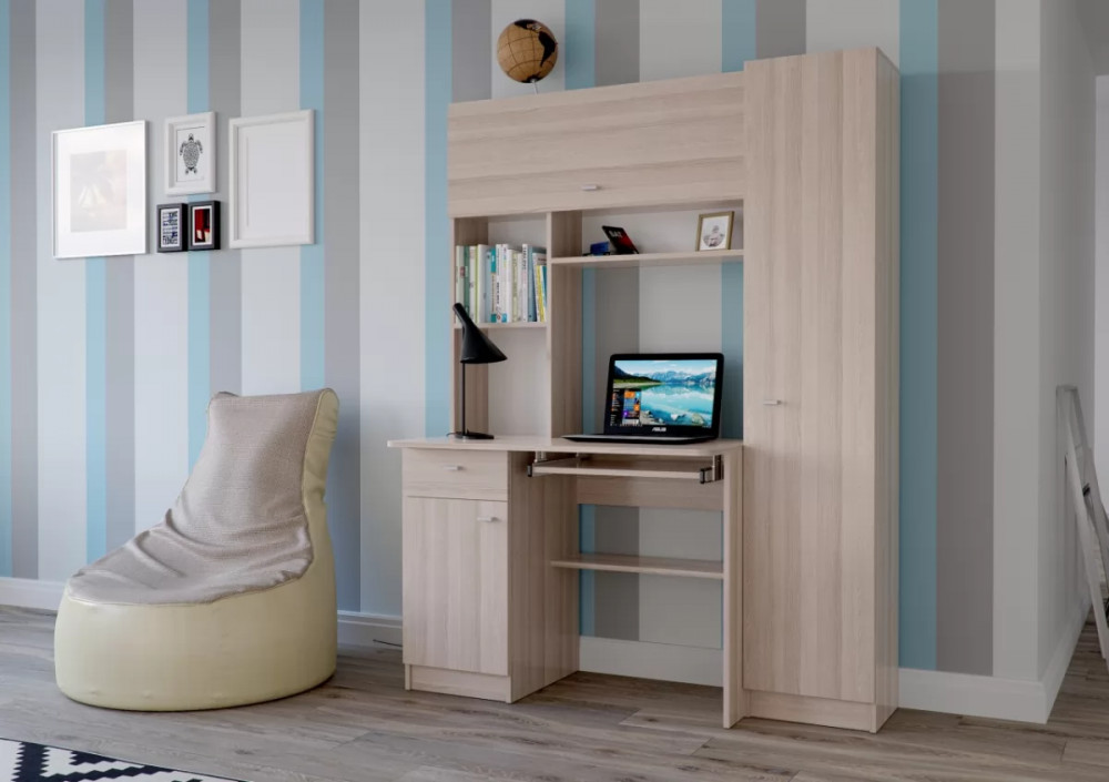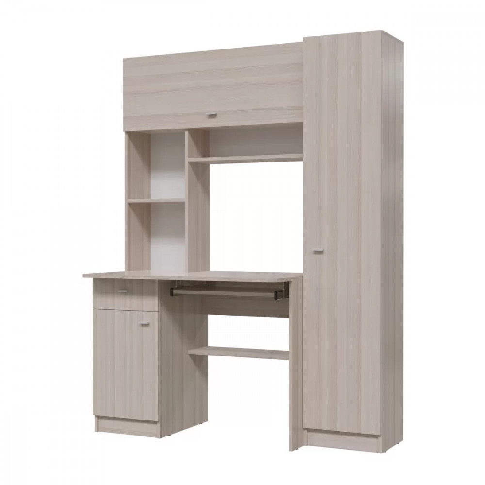 Стол "Альфа" - отличный вариант для организации рабочего пространства школьника или студента. Стол включает в себя 12 полок (3 открытых, 2 закрытых фасадом из ЛДСП, 2 в тумбе и 5 в пенале), которые смогут вместить большое количество книг, тетрадей и канцелярских принадлежностей. Также стол оснащён выдвижным ящиком и выдвижной полкой для клавиатуры.