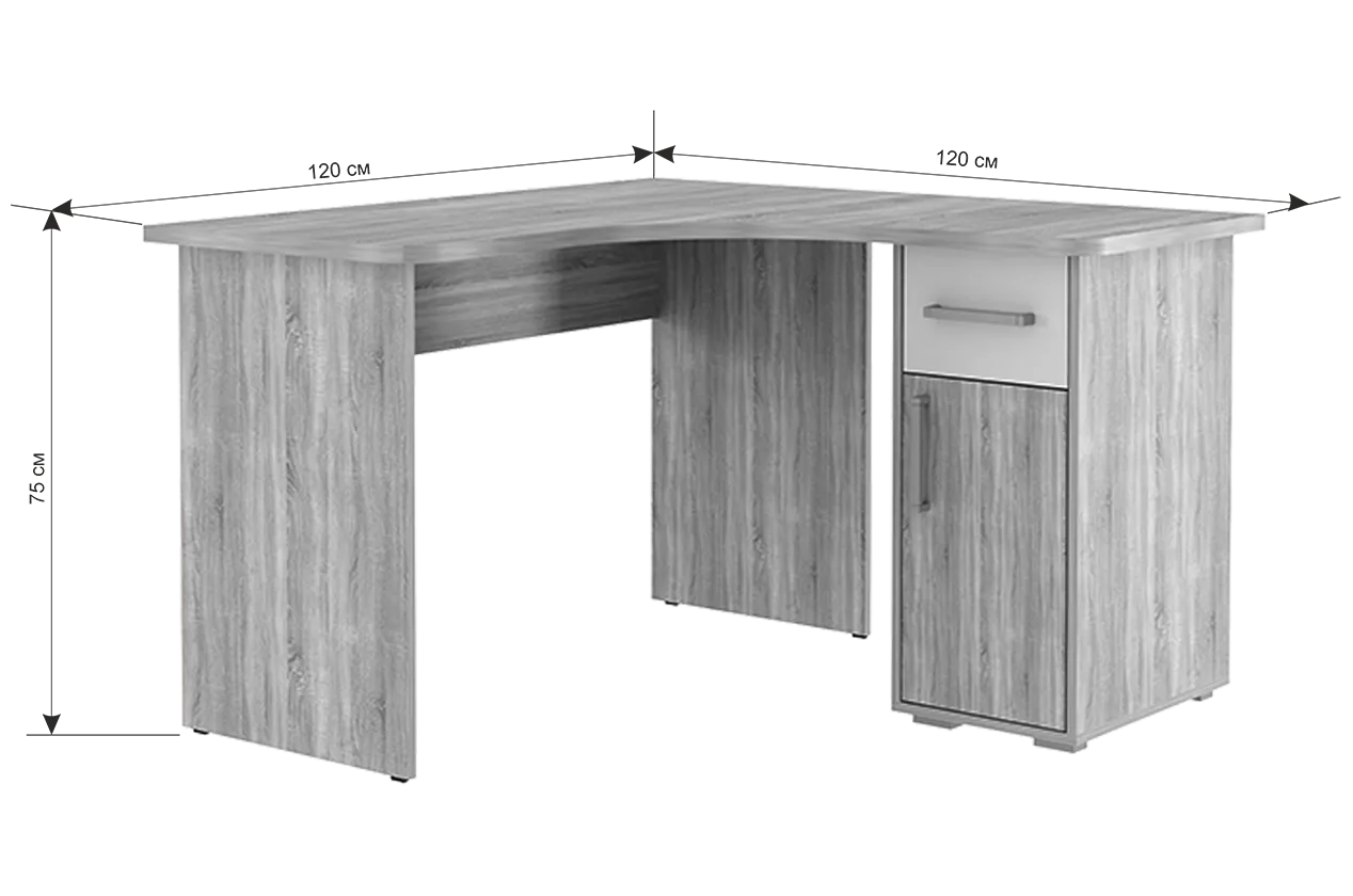 Стол компьютерный 1200 угловой Лайт-1 дуб сонома/белый в Мегионе