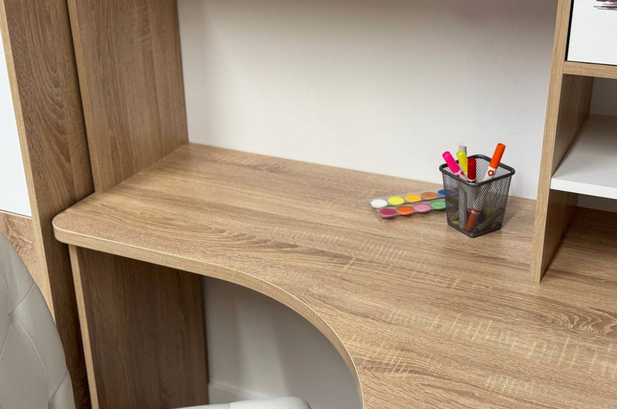 Угловой компьютерный стол «Лайт-1» может быть дополнен функциональной надстройкой и стеллажом той же серии. Главными особенностями данной серии являются радиусные элементы и утолщенная столешница – 25 мм. Сочетание удобства, лаконичности и простоты – идеальное решение для Вашего рабочего места.