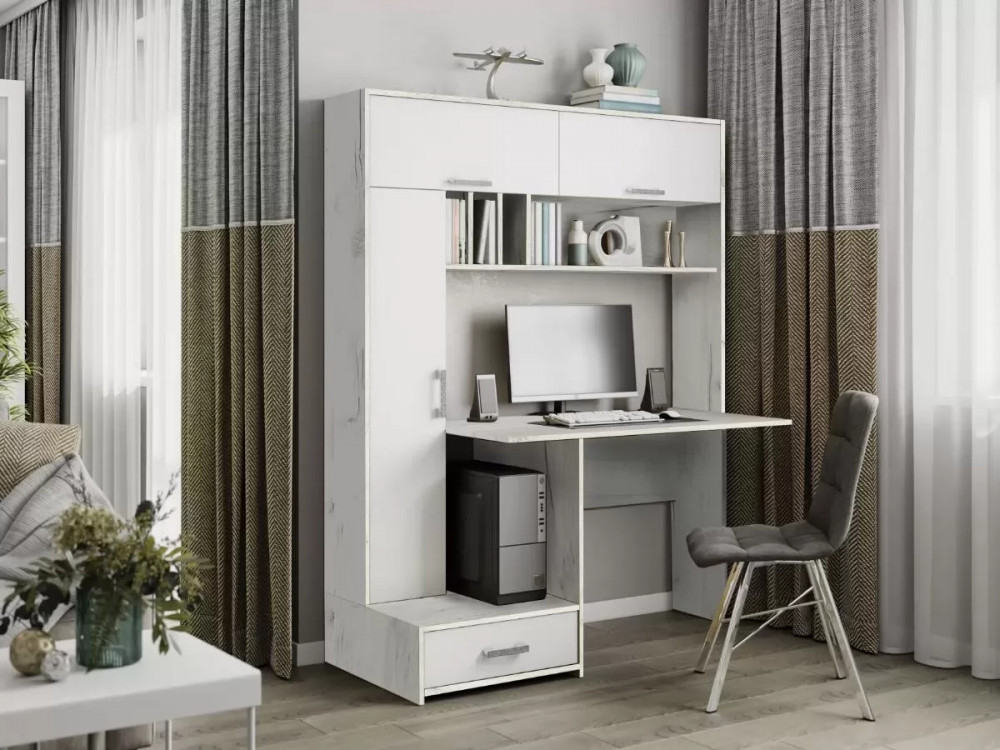 Компьютерный стол «Мист-1» отличается своей функциональностью в сочетании со стильными цветовыми решениями. В его конструкции предусмотрены следующие элементы: отсек для системного блока, встроенный пенал, система вместительных открытых и закрытых полок.
