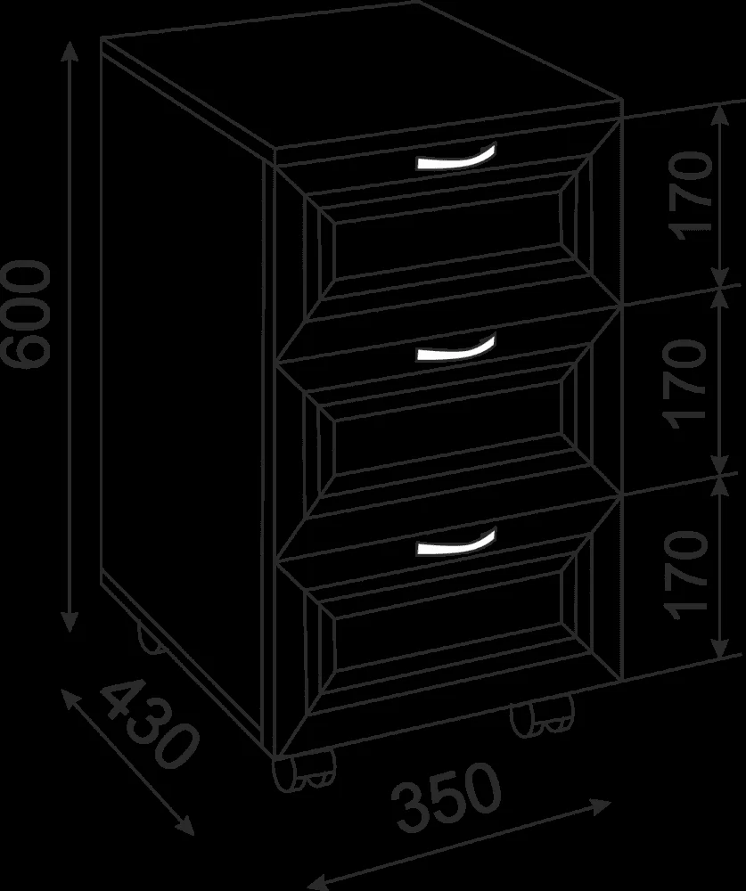 1. Тумба имеет 3 выдвижных ящика.