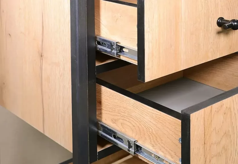 Прихожая «Берген 5» состоит из 2-х створчатого шкафа с выкатной штангой, атакже двух выкатных ящиков и зеркала с фацетом.
