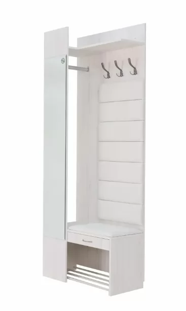 Ширина (мм): 800 Высота (мм): 2000 Глубина (мм): 350 Цвет: Винтерберг/Люкс Милк Материал: ЛДСП/Зеркало Вес, кг: 48 Объем, м3: 0.12 Коллекция: Ольга-Милк Стиль: Современный Размер зеркала: 296х1450 мм Корпус — ЛДСП 16 мм Кромка ПВХ 1 мм Направляющие — шариковые Металлическая фурнитура Зеркало с фацетом Мягкий элемент — экокожа (Люкса Милк) Полка для обуви Регулируемые опоры