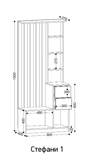 Размеры, мм: 800х400х1900