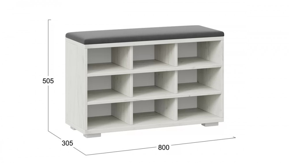 Тумба для обуви Тип 10 Дуб крафт белый, Велюр Графит в Мегионе
