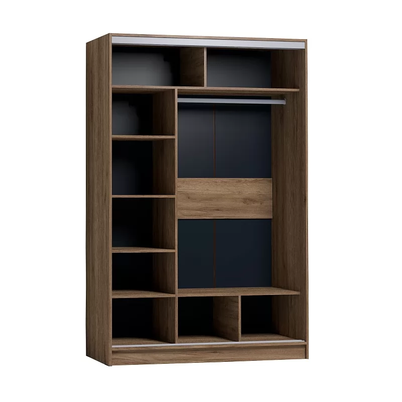 Особенности -Полки регулируемые по высоте -Стационарная штанга для одежды -Ручки из массива дерева