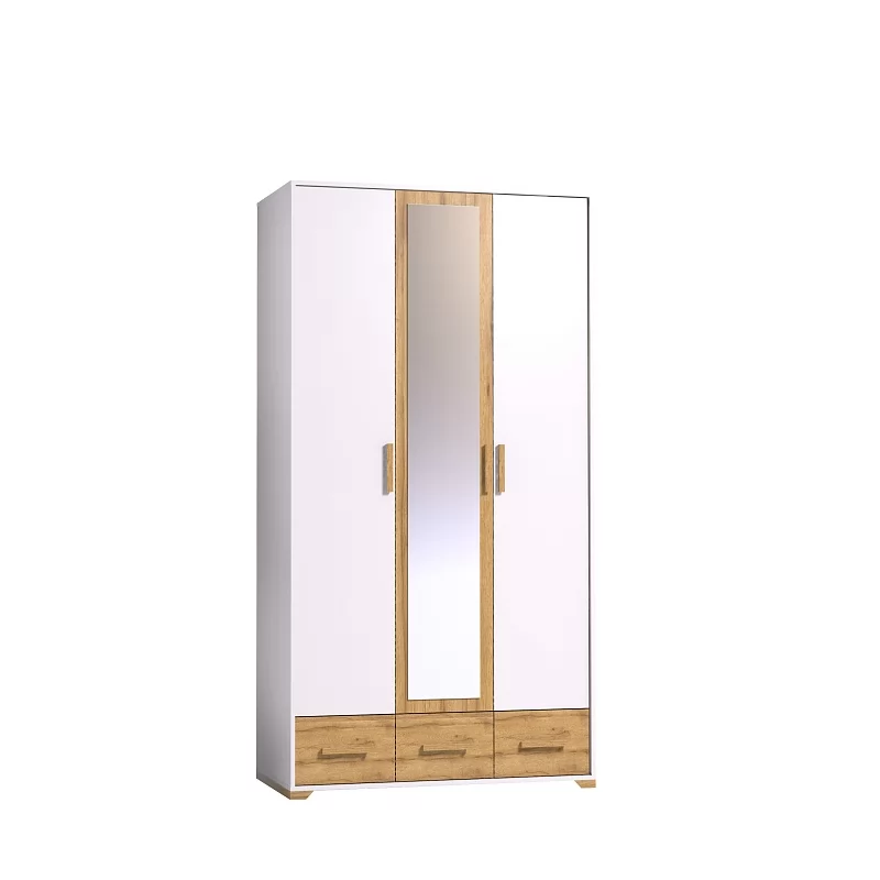 Трехстворчатый шкаф для одежды и белья Айрис 444 с зеркалом и выдвижными ящиками — находка для большой и маленькой спальни. Функциональное наполнение шкафа разделено, что очень удобно для зонирования гардероба всех членов семьи. Шкаф оснащен отделением для хранения белья с полками на скрытых полкодержателях и отделением для одежды со стационарной штангой 758 мм. 3 выдвижных ящика комплектуются шариковыми направляющими, что обеспечивает минимальный люфт ящиков и максимальное использование их площади. Петли с доводчиками для бесшумного закрывания дверок шкафа. Зеркало на фасаде шкафа.