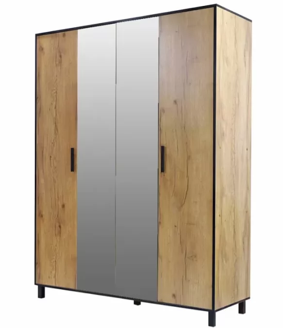 Ширина (мм): 1600 Высота (мм): 2100 Глубина (мм): 550 Цвет: Дуб крафт золотой/Черный Материал: ЛДСП/Зеркало Вес, кг: 175 Объем, м3: 0.31 Корпус — ЛДСП 16 мм Кромка ПВХ 0.4 мм Кромка ПВХ 2 мм Зеркало с фацетом Ручки — черный пластик Дверцы с доводчиком Опоры — черный металл (ФМС) Размер зеркала: 1950х410 мм Возможно исполнение с разными типами опор