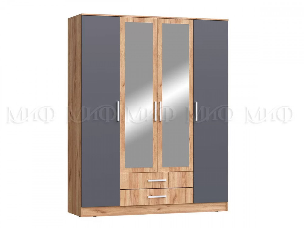 Шкаф для одежды 4-дверный Мартина ЛДСП Графит, Дуб крафт в Мегионе