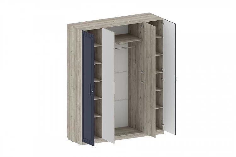 Шкафы изготовлены из материала ЛДСП 16 мм, задняя стенка из ХДФ. Фасады представлены в комбинированном варианте: створки из МДФ 16 мм под пленкой ПВХ: Холст белый, Холст вулканический, Холст сапфировый. Комплектуются петлями с доводчиком и матовыми хромированными металлическими ручками.