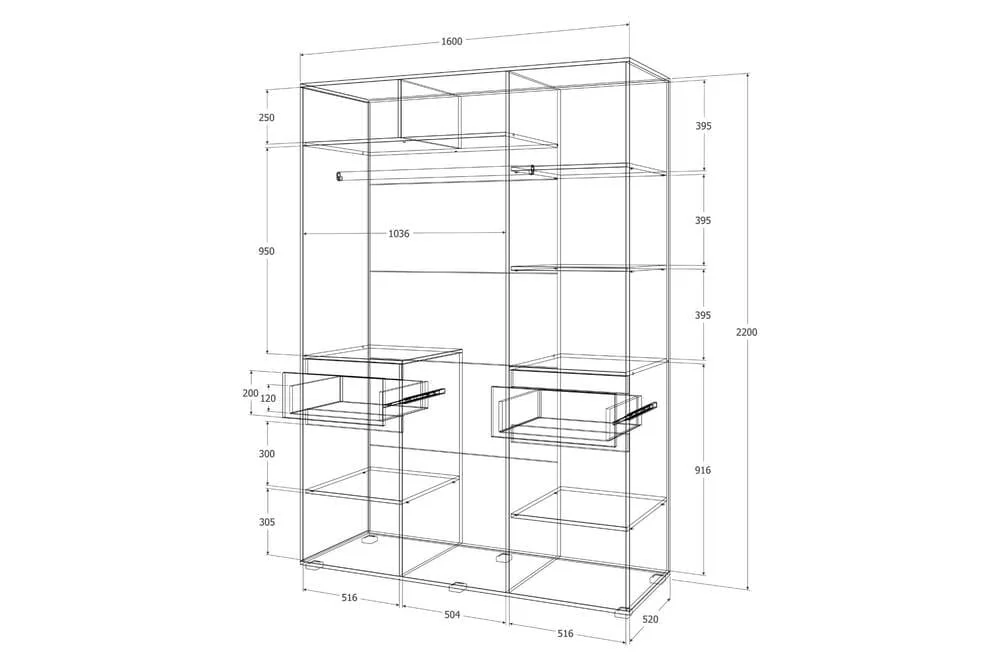 *Размеры (ВхШхГ), мм:2200х1600x520 мм