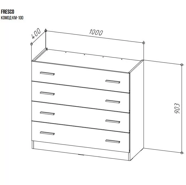Размеры (ШхГхВ): 1000х400х903мм;