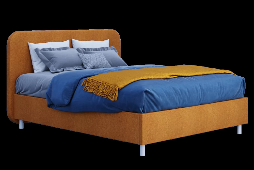 Дизайн кровати демонстрирует лаконичные формы и сбалансированные объемы. Отсутствие декорирования и мягкое изголовье позволяют кровати выглядеть современно. Царга здесь гармонично поддерживается скругленным контуром изголовья, а отсутствие стежки и простота форм позволяют создать единый законченный образ кровати. Мягкие царги и углы у изножья уберегут от травм и сделают спальню уютнее.Высокие ножки и просвет над полом облегчат уборку.