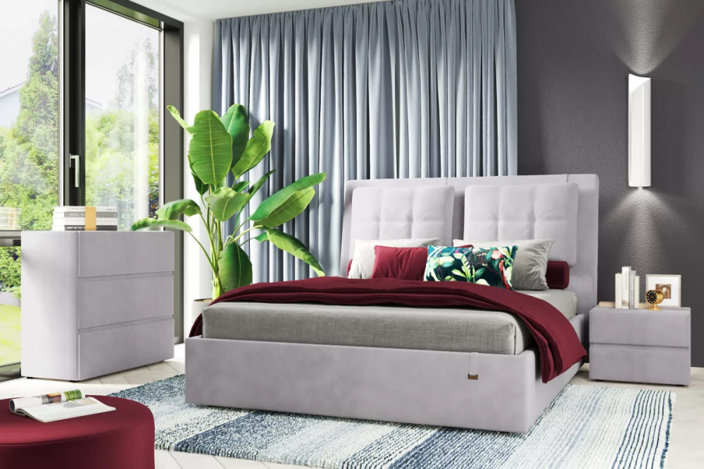 Если вы являетесь поклонником комфортного интерьера, стоит обратить внимание на кровати с мягким изголовьем «Ester». Современные модели являются эргономичными и функциональными. Можно с комфортом читать книги перед сном, смотреть телевизор, завтракать в постели – и даже работать в более расслабленном положении. Высокое изголовье с обивкой позволяет повысить шумоизоляцию. Мягкая обивка кровати и отсутствие острых углов помогут избежать травмирования.