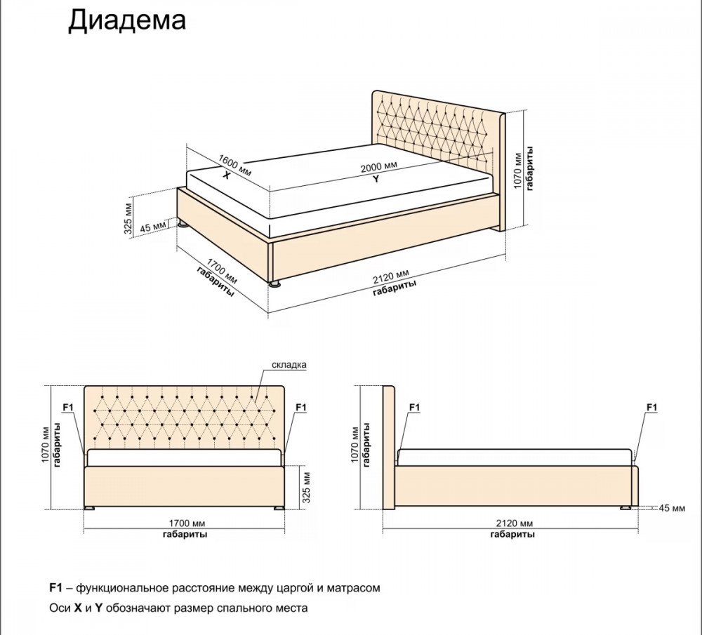 Кровать 900*2000 Диадема в Мегионе