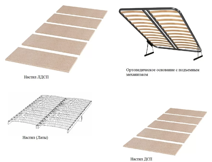 ОснованиеОртопедическое с подъемным механизмом, Настил из ЛДСП, Ламели, Настил из ДСП 2с
