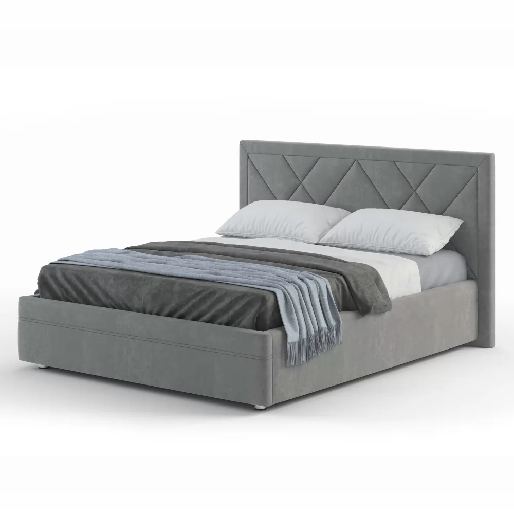 Эксклюзивная модель с мягким изголовьем, украшенным трендовым геометрическим дизайном. Такая модель на сегодняшний день пользуется большой популярностью у покупателей. Обладает всеми основными преимуществами, которые присутствуют у популярных моделей Marta и Jessica, т.е.: полный набор доступных опций, малый и большой ортопедический настил, сплошной настил из ЛДСП, комплектация подъемным механизмом.