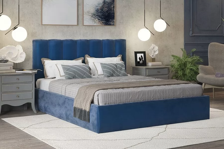 Кровать Элен 1600*2000 мм, велюр NEO 27, синий в Мегионе