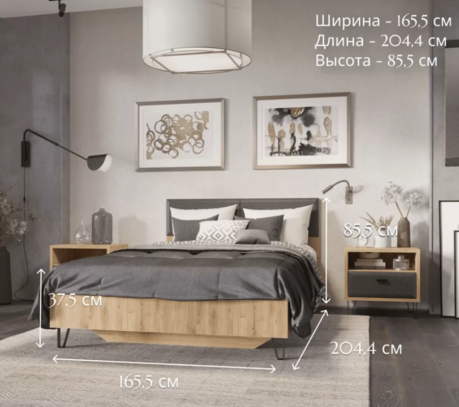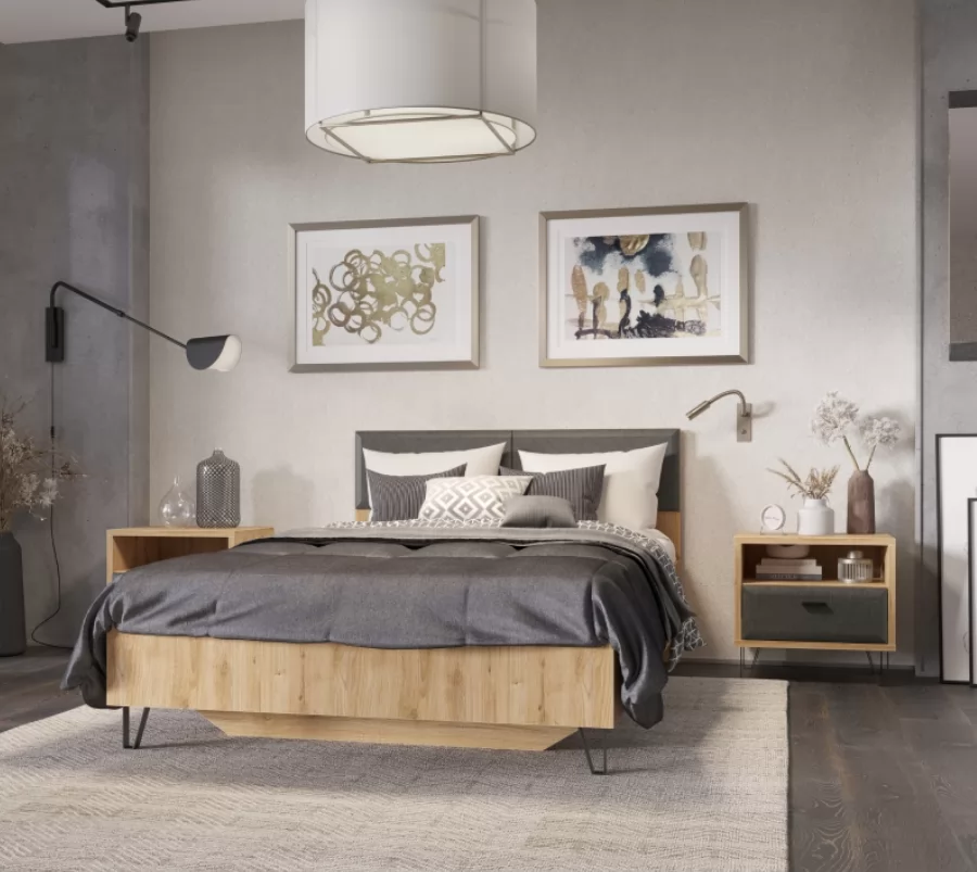 GRACE кровать LOZ160х200 (Дуб наварра/ Графит) в Мегионе