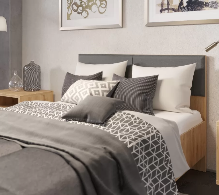 Кровать изготовлена из ламинированной ДСП и проста в уходе. Достаточно протереть фасад от пыли мягкой сухой тряпкой. Ортопедическое основание кровати гарантирует правильное распределение веса во время сна и улучшает качество сна. Благодаря своему компактному размеру эта мебельная единица подойдет даже для небольших спален.