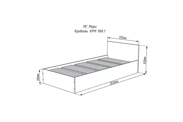 МОРИ КРМ 900.1/1 Кровать (сп/м 900*2000мм), ЛДСП Графит МП (НАСТИЛЫ) в Мегионе